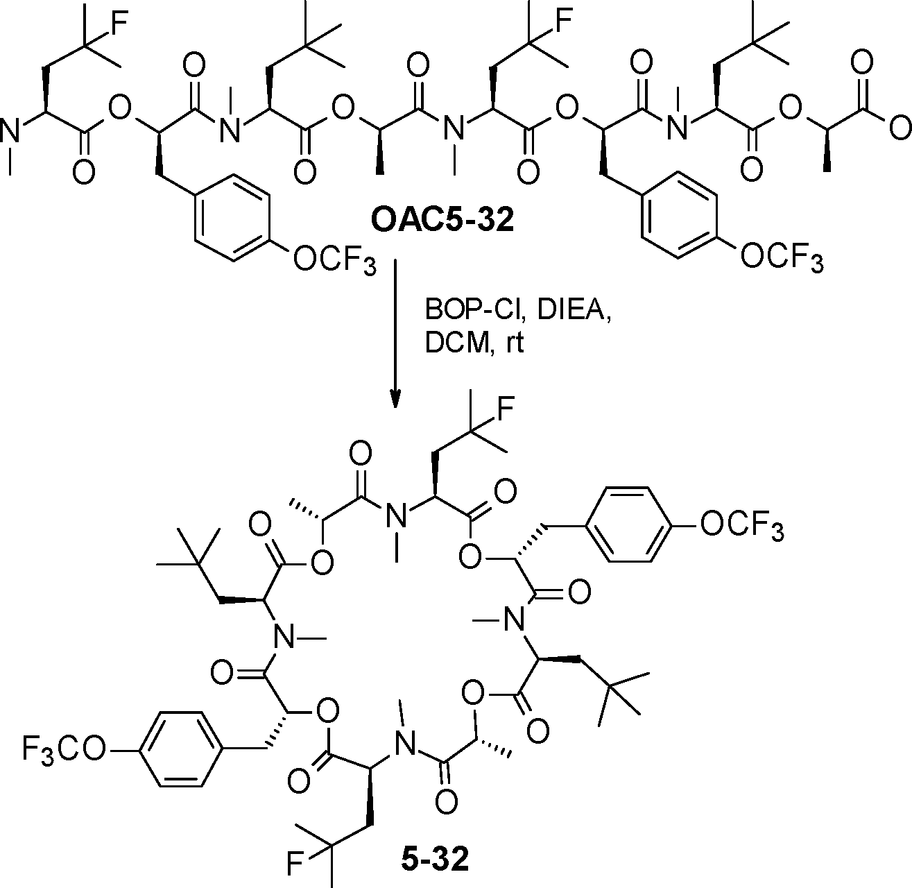 - WXAXYBUWUHEYRW-HAWHPWMCSA-N C[C@H](C(N(C)[C@@H](CC(C)(C)F)C(O[C@H](Cc1ccc(C(C)(C)C)cc1)C(N(C)[C@@H](CC(C)(C)C)C(O[C@H](C)C(O)=O)=O)=O)=O)=O)OC([C@H](CC(C)(C)C)N(C)C([C@@H](Cc1ccc(C(C)(C)C)cc1)OC([C@H](CC(C)(C)F)N(C)C(OC(C)(C)C)=O)=O)=O)=O Chemical compound C[C@H](C(N(C)[C@@H](CC(C)(C)F)C(O[C@H](Cc1ccc(C(C)(C)C)cc1)C(N(C)[C@@H](CC(C)(C)C)C(O[C@H](C)C(O)=O)=O)=O)=O)=O)OC([C@H](CC(C)(C)C)N(C)C([C@@H](Cc1ccc(C(C)(C)C)cc1)OC([C@H](CC(C)(C)F)N(C)C(OC(C)(C)C)=O)=O)=O)=O WXAXYBUWUHEYRW-HAWHPWMCSA-N 0.000 description 1