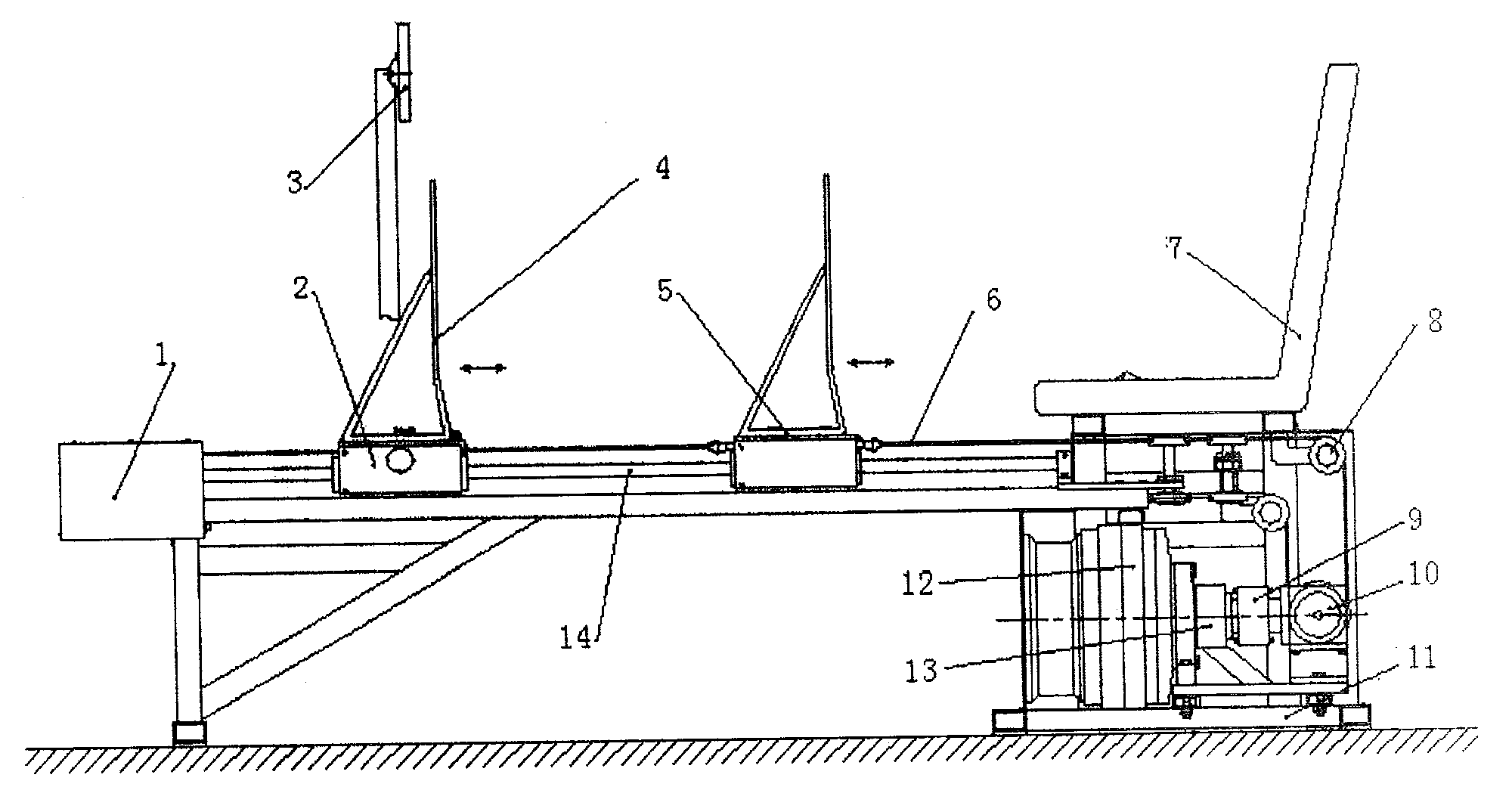 目前国内采用的主要是通常被称作“杠铃训练”的负重力量训练,这种训练方式在伸缩腿的过程中都是用同样的力,这种训练的负荷形式不适合比赛当中负荷形式,无法最大限度模拟专项运动的负荷形式。对于国外的一些训练器,如Cybex的Eagle Leg Press,Freemotion公司的EPIC Leg Press和Calf,Hoist公司的VLP等等,这些训练器都是双腿支撑蹬腿,除提供负载的方式不同外,与“杠铃训练”一样存在运动负荷不适当的缺点。Keiser公司的Air300 Leg Press改进了这种训练方式,实现了可单腿分开训练的方式,但是无法满足单向负重的负载形式。因此需要尽快设计和研制满足所需负载形式的训练设备。At present, what is used in China is mainly weight-bearing strength training, which is usually called "barbell training". This training method uses the same force in the process of stretching and stretching the legs. Simulate the load form of special sports to the greatest extent. For some foreign trainers, such as Cybex's Eagle Leg Press, Freemotion's EPIC Leg Press and Calf, Hoist's VLP, etc., these trainers are double-leg support kicks, except for the different ways of providing load, they are similar to " "Barbell training" also has the disadvantage of inappropriate exercise load. Keiser's Air300 Leg Press has improved this training method and realized the way of training with one leg separately, but it cannot meet the load form of one-way load. Therefore, it is necessary to design and develop training equipment that meets the required load form as soon as possible.