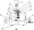 2、如权利要求1所述的一种暖包机,其特征在于所述机架上设有气缸(13)、料杆及转轴(14),所述转轴(14)与传动装置传动连接,盛料斗(8)具有可开合的仓门(15),盛料斗(8)的仓门(15)与气缸(13)的活塞杆连接,落料斗(9)通过摆臂安装在转轴(14)上,所述料杆固定安装在机架(1)上方后,其料杆的料爪伸入到转盘(5)内。