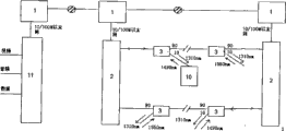 System architecture and theory diagram are seen Fig. 1.It comprises several exchanges and the transmission equipment 1 that is arranged on the basic routing line, each exchange and transmission equipment 1 corresponding site apparatus 2, pass through an optical fiber communication 2 of adjacent sites equipment, on other two optical fiber, be provided with several binding post monitoring points, the binding post test point adopts passive optical coupler 3, adopts the mode of at least 1 wavelength broadcasting to the direction of each binding post monitoring point at site apparatus 2; And adopt the mode of wavelength division multiplexing to the direction of site apparatus 2 in the binding post monitoring point, allow several binding posts monitoring point to communicate by letter with site apparatus 2 simultaneously; The binding post monitoring point also is connected with railway patrol telephone 8 and emergency communication equipment 10 simultaneously.