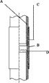套管A出厂前接箍B的一边先与管体拧接到位,运输至油田,需要下井时再与另一根套管进行拧接下井,形成密闭的套管柱直至几千米深的采油气层。在拧接上扣过程中,套管A与接箍B进行旋合拧接,套管A上的外螺纹C和接箍B上的内螺纹C旋紧配合在一起直至开始发生过盈,产生一定的接触应力。
