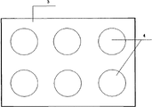 所述上模板1上的凸板2与下模板3上的凹槽4大小、位置相适应,凸板2和凹槽4可以根据产品需要为任意花纹形状。通过更换带有不同形状花纹图案的凸板2和凹槽4的上、下模板,可以生产不同形状图案的产品。