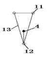 Embodiment 1.Like Fig. 1, shown in 2, comprise and just put the quadrangular pyramid variable cross-section double layer grid 1 of finding time, can know each direction (X from Fig. 1; The Y direction) 16 Pin variable cross-section space truss quadratures form; And 15 * 15=225 the grid of having found time, the area of promptly finding time reaches 225 * 25=5625 ㎡, accounts for 25% of total roof system area.It is tangible that material usage descends.It is about 40% to know that from Fig. 3 total height of structure has also descended than the three layer flat plate rack of routine, because structure is found time and structure height reduces, its steel using amount descends, but the also corresponding decline of its rigidity, with the instructions for use of not satisfying structure.Be head it off; The present invention adopts roofing cable-stayed prestressing method to make roof structure and supporting frame trestle co-operation; Under the prestressing force effect, form " structure self equilibrium systems "; Its concrete structure is along x direction and y direction two Pin Prestressed Space truss 2 to be set respectively at about 1/3 place, both sides of just putting the quadrangular pyramid variable cross-section double layer grid 1 of finding time, and the two supports of Prestressed Space truss 2 is on frame column 3; Two upper chord 11 downwarpings of Prestressed Space truss 2, a lower chord 12 is horizontal straight-bar, two upper chords 11 are connected up and down through four diagonal web members 13 with a lower chord 12.Prestressed cable 4 is arranged on Prestressed Space truss 2, be provided with cable wire in the crosspoint of x direction and y direction Prestressed Space truss 2 lower edges and turn to bracing frame 5; The two ends of winding up at every Pin Prestressed Space truss 2 are provided with support node 6, are provided with cable wire supporting steel frame 7 in the steel ball of support node 6 upper end, are provided with triatic stay 8 in the upper outside of frame column 3; One end of prestressed cable 4 has a down dip to the span mediad around cable wire supporting steel frame 7 top fixed pulleys; And the cable wire that is fixed on this Pin Prestressed Space truss 2 turns on the bracing frame 5, and the other end is walked around the bottom that is fixed on frame column 3 behind the fixed pulley of triatic stay 8 ends.Triatic stay 8 leans on frame column 3 one side gusset places to be provided with the earth anchor cable wire 9 that is 60 ° of angles with ground, and the other end of this earth anchor cable wire 9 is anchored on the ground.The prestressing apparatus 10 of positive and negative screw thread is housed on triatic stay 8 and earth anchor cable wire 9.
