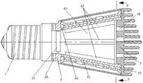 Referring to Figure 10, all led light source assemblies 5 share same diffuser 2.Diffuser 2 is truncated cone-shaped.Inner surface at diffuser 2 is provided with draw-in groove 21.Draw-in groove 21 prolongs and extends axially.The mode that is stuck in the draw-in groove 21 by the side with reflection shield 6 fixes reflection shield 6.