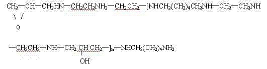 Described method is to add diethylenetriamine, part hexanediamine and deionized water in reaction vessel, and described part hexanediamine is the 25-35% of hexanediamine total amount, warming while stirring, to 60 ℃-65 ℃, slowly drip epoxy chloropropane and carry out addition reaction, drip time 2-3h, dropwise; Continue insulation reaction 30-40min, drip remaining hexanediamine solution, drip time 0.5-1h, dropwise, continued insulation reaction 3-4 hour, cool to below 40 ℃, adding hydrochloric acid accent pH value is 5-6, gets finished product.