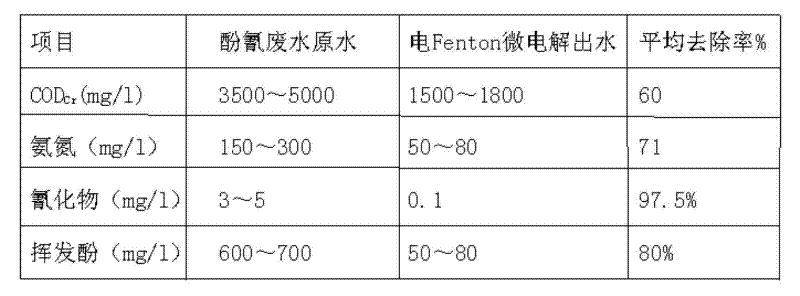 5. coal chemical industrial waste water treatment process according to claim 1, it is characterized in that: the little electrolytic catalysis reacting treatment time of one-level Fenton is 30~70 minutes; The little electrolytic catalysis reacting treatment time of secondary Fenton is 15~60 minutes.