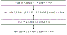 本发明供的一种汽车远程控制方法具体包括:远程控制服务器接收控制请求,并获得用户标识;远程控制服务器根据用户标识,查找订单,获取控制请求对应的车辆信息和控制指令;远程控制服务器下发控制指令到对应车辆;远程控制服务器接收所述对应车辆的所述控制指令的执行结果。 A car remote control method provided by the present invention specifically includes: the remote control server receives the control request, and obtains the user ID; the remote control server searches for the order according to the user ID, and obtains the vehicle information and control instructions corresponding to the control request; sending a control instruction to a corresponding vehicle; the remote control server receives the execution result of the control instruction of the corresponding vehicle.