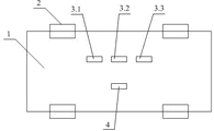 In figure, 1-car chassis, 2-motor tire, 3-ultrasonic receiver, 3.1-ultrasonic receiver A, 3.2-ultrasonic receiver B, 3.3-ultrasonic receiver C, 4-ultrasonic transmitter.