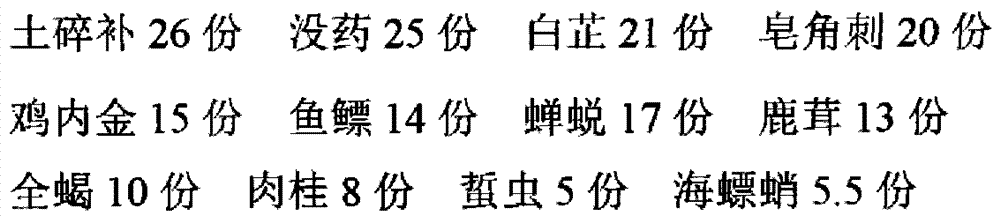 The present invention selects medical material according to the reason of monarch, is carefully dished up, and all medicines in full side have to mend to have and rush down, treating both the principal and secondary aspects of a disease, row qi and blood invigorating, beneficial essence is filled out marrow, spleen reinforcing kidney, strengthening vital QI to eliminate pathogenic factors, has the effect of granulation promoting, evident in efficacy, make spleen kidney healthy and vigorous, QI and blood is unobstructed, the demonstration of clinical verification data, and Chinese medicine of the present invention also has antibacterial bacteriostatic, enhancing human body immunity ability, improves the effects such as blood vessel microcirculation.