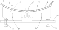 (4)由于舱裙板4的变形是由焊缝收缩变形引起的,其余位置并未产生变形,因此,将待调修舱裙板4放置到正面调修工装1或反面调修工装2中的可调垫块上,保证焊缝位置与底板上两可调垫块的中心位置对齐,使用压力机上的随行压头17对待调修舱裙板4上的焊缝位置处进行加压,至舱裙板4与下方的可调垫块完全贴合,并将该步骤反复进行几次;