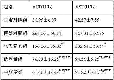 表1 本发明中药组合物对大鼠模型肝功能的影响 Table 1 The influence of traditional Chinese medicine composition of the present invention on rat model liver function