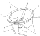 图中:1—双层结构盆体,2—环形进水管,3—下圆孔,4—手动拉杆排水装置,5—自来水进水管,6—上圆孔,7—自来水启闭阀,8—排水拉杆,9—排水管,10—连接管,11—排水塞。