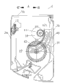 如图3-图6所示,在本发明的一个具体的示例中,传动件包括第一传动子件和第二传动子件62。第一传动子件是齿轮61,第一传动子件与驱动装置50相连。第二传动子件62具有圆弧形的齿条部621,第二传动子件62与遮挡板40相连且齿条部621与齿轮61啮合。这样,驱动装置50可以驱动第一传动子件(齿轮61)旋转,由于齿条部621与齿轮61啮合,从而齿轮61可以带动齿条部621旋转,进而再使第二传动子件62带动遮挡板40在关闭位置和打开位置之间枢转。由此,可以使遮挡板40的运动更加稳定,结构更加合理。