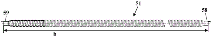 figure 2 shows a side view in partial cross-section of a rope assembly originating from the assembly of figure 1 in an unloaded state,
