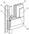 步骤五、喷涂保温层9,检查装饰面板5平整度后在装饰面板5内侧喷涂聚氨酯形成保温层9,固定并密封装饰面板5与侧边龙骨7的间隙;