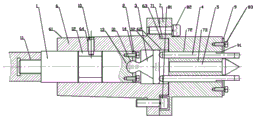 为保证连接杆和推板整体构件的行程,避免产生干涉,作为本发明的进一步改进,在所述夹具体6外锥上设有定位螺丝孔64,定位螺丝10穿过所述定位螺丝孔64固定于所述连接杆1上的环形行程槽上。