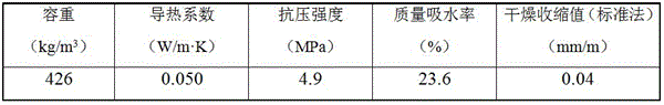 (7)将步骤(6)得到的湿混合料与铝粉发泡剂混合,机械搅拌5min,发泡,即得SiO2气凝胶泡沫混凝土。表10为本实施例制得的SiO2气凝胶泡沫混凝土完全硬化后的性能指标。(7) The wet mixture obtained in step (6) is mixed with an aluminum powder foaming agent, mechanically stirred for 5 minutes, and foamed to obtain SiO 2 aerogel foamed concrete. Table 10 is the performance index of the SiO 2 aerogel foam concrete prepared in this example after it is completely hardened.