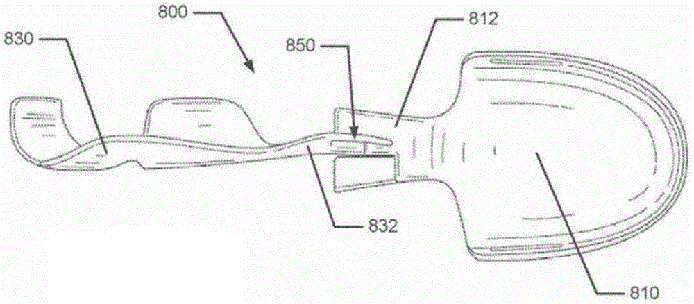 图8A例示了根据至少一些实施例的用于支撑穿着者脚的足底面的支撑构件的俯视图。8A illustrates a top view of a support member for supporting a plantar surface of a wearer's foot in accordance with at least some embodiments.
