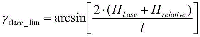 飞机滚转擦地限制角γflare_lim可运用函数计算得到,Hbase表示停机状态机翼距地面基本高度,Hrelative表示飞机轮底距机场地面相对高度,l表示飞机翼展长度。在飞机翼展、起落架布局确定条件下,飞机轮底相对机场地面高度Hrelative越高,滚转擦地限制角越大。