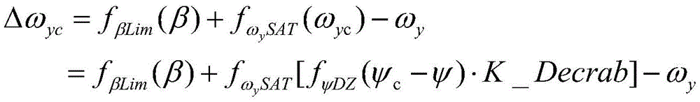 经上述算法处理后,得偏航角速率偏差指令△ωyc为: