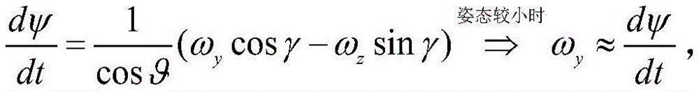当滚转角γ和俯仰角θ较小时,偏航角速率ωy近似为偏航角的微分。上式中ψ表示航向角,ωz表示俯仰角速率。