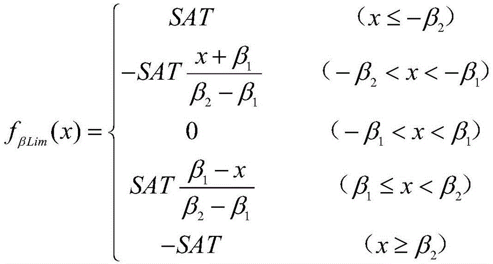 侧滑限制函数需综合考虑飞机侧滑限制值与偏航角速率限制参数SAT两个条件,侧滑限制非线性函数表示如下: