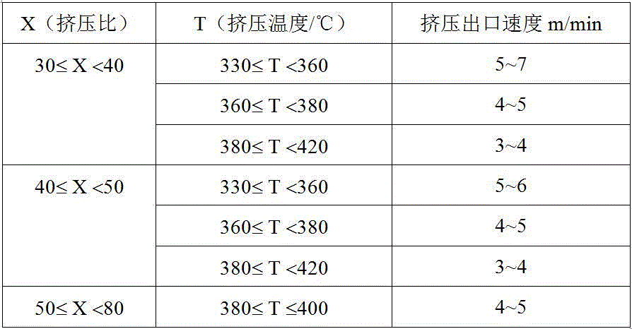 (3)将预处理后的镁合金棒材,进行分流挤压,挤压参数符合下表,制得可深度冷弯高吸能镁合金管材;