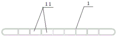 Further, as shown in fig. 2 to fig. 6, in the cross-type flat heat pipe provided by the present invention, a plurality of heat transfer channels 11 located in the same plane and parallel to each other are formed inside each flat heat pipe unit 1, the extending direction of each heat transfer channel 11 is the same as the length direction of the flat heat pipe unit 1, and each heat transfer channel 11 is arranged at intervals along the width direction of the corresponding flat heat pipe unit 1, each heat transfer channel 11 is filled with a working medium, according to different working conditions, the liquid working medium can be selected from solutions such as acetone or secondary distilled water, the working medium is heated, evaporated, cooled and condensed in the heat transfer channel 11, and meanwhile, the slender heat transfer channel 11 provides a capillary force required by the working medium transmission, so as to implement gas flow, thereby implementing heat transmission and circulation in the heat transfer channel 11 of the flat heat pipe unit 1.