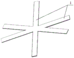 Further, as shown in fig. 1 and fig. 3 to 5, in the cross-type flat heat pipe provided by the present invention, the first ends of the flat heat pipe units 1 are gathered and connected in a direction approaching each other, the second ends of the flat heat pipe units 1 extend and diverge in a direction away from each other, and the first end of each flat heat pipe unit 1 is connected to the first ends of two adjacent flat heat pipe units 1, which can be understood that the plurality of flat heat pipe units 1 are connected in a star-shaped cross manner.