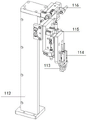 112—支架;113—直线运动夹爪;114—夹爪气缸;115—垂直移动气缸;116—水平移动气缸;