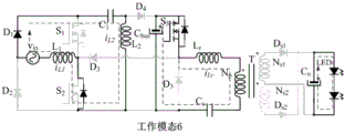 Fig. 7 is a sixth equivalent circuit diagram of an operating stage of an LED driving circuit of a hybrid control single-stage bridgeless Sepic and LLC according to an embodiment of the present invention.