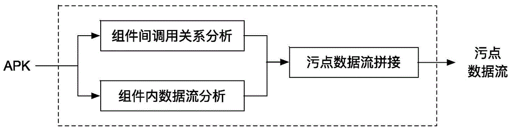 步骤1:提取Android应用的组件调用参数,确定组件间调用关系;并提取Android应用组件内的污点数据流,存储其相关信息;Step 1: extract the component calling parameters of the Android application, determine the calling relationship between the components; and extract the taint data flow in the Android application component, and store its related information;