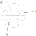 图2A、图2B展示了两种不同的长丝类型42.1的剖视图,这两种不同的长丝类型在它们的圆周(X形)和不同的夹角中包括四个凹部44;