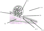 图3B展示了在常规簇绒拣选器10.1和对应物52之间夹紧超薄长丝42.2的常规拣选器眼20.1的示意图;