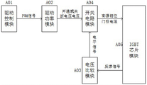驱动控制模块A01用于给驱动功率模块A02提供PWM脉冲信号,IGBT开通与关断过程是通过驱动控制模块A01调制占空比来输出PWM信号而决定的,是预先设定好的,怎样通过调制占空比输出PWM信号决定IGBT开通与关断过程是现有成熟技术,故在此不再赘述。