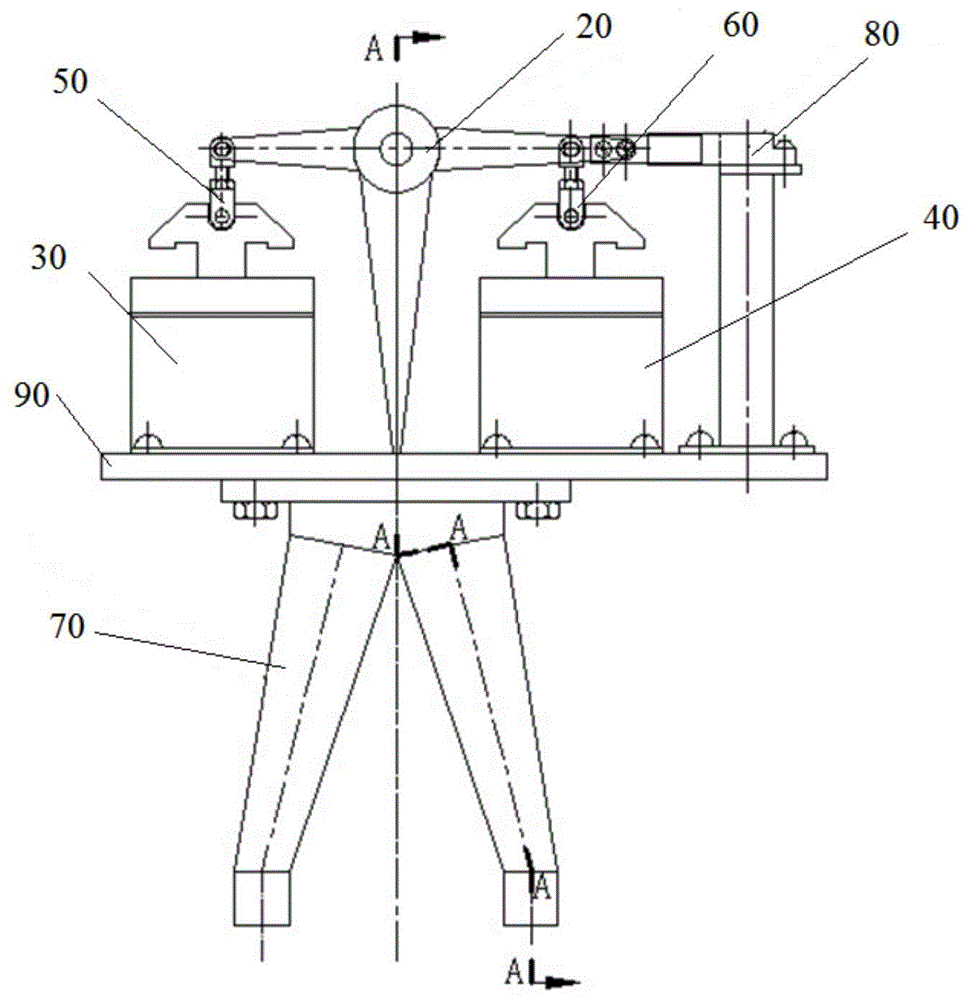 As an embodiment of the present invention, the first direction is counterclockwise, the second direction is clockwise, a first electromagnet can be used as the first electromagnetic assembly 30, a second electromagnet can be used as the second electromagnetic assembly 40, the second adjusting ring 52 and the fourth adjusting ring 62 are respectively pin-connected with the armature of the first electromagnet and the armature of the second electromagnet, and the first adjusting ring 51 and the third adjusting ring 61 are respectively pin-connected with two ends of the nozzle assembly 20. The distance between the armature of the electromagnet and the two ends of the nozzle component can be conveniently adjusted in a threaded connection mode, and the mode is simple and convenient to operate, easy to process and easy to obtain.