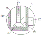 5. The tea drying and cooling integrated machine according to claim 1, wherein the fixing device comprises an L-shaped insertion rod (27) located in the round cavity, the upper end of the L-shaped insertion rod (27) penetrates through the inner top of the round cavity and extends into the strip-shaped opening, a slot matched with the L-shaped insertion rod (27) is formed in the lower end of the device block (25), the lower end of the L-shaped insertion rod (27) is fixedly connected with the inner bottom of the round cavity through a spring (26), a strip-shaped hole is formed in the inner wall of the round cavity, and the side wall of the L-shaped insertion rod (27) penetrates through the strip-shaped hole.