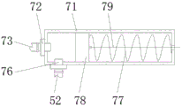 所述冲洗装置(7)包括固定板(70),固定板(70)的底端与净水箱(51)的顶面固定连接,固定板(70)的顶部固定连接有固定筒(71),固定筒(71)的左端面固定穿插有出水单向阀(72),出水单向阀(72)的另一端连通有出水管(73),出水管(73)的另一端连通有缓冲箱(74),缓冲箱(74)与固定箱(11)的内壁固定连接,缓冲箱(74)的侧面连通有喷嘴(75),固定筒(71)底面的左端固定穿插有进水单向阀(76),进水单向阀(76)的底端与抽水管(52)的顶端连通,固定筒(71)内腔的右侧面通过复位弹簧(77)传动连接有活塞(78),活塞(78)与固定筒(71)的内壁滑动连接,活塞(78)的右侧面连接有传动线(79),传动线(79)的另一端延伸至固定筒(71)的外部并缠绕在绕线轮(62)的外部。