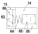 at the beginning, the lifting disk 26 and the sliding disk 31 are positioned at the lower limit position, the two drilling blocks 30 are in a closed state, so that the opening at the lower side of the sampling tube 19 is not communicated with the outside, under the elastic action of the auxiliary return spring 64, the limit slide block 65 is positioned at the right limit position, the limit slide block 65 is abutted against the lifting disk 26 to limit the lifting disk 26 to move upwards, the exhaust electromagnetic valve 61 is positioned at a closed state, the auxiliary piston 55 is positioned at the upper limit position, the electromagnet 35 is not electrified, the permanent magnet 37 and the slide rod 38 are positioned at the right limit position under the action of the auxiliary compression spring 36, the sealing block 44 is positioned at the right limit position to ensure that the through hole 68 is not communicated up and down, the auxiliary electromagnet 53 is not electrified, the bolt 42 extends into the bolt hole 47, the piston 22 is positioned at the contact position with the position switch 49, the auxiliary electromagnetic valve 34, the exhaust electromagnetic valve 61 and the electromagnetic valve 15 are positioned, the slide 39 is at the left limit.