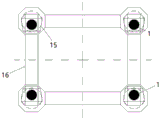 S1:将所有的沉箱桩基础(1)安装在预设位置形成两组沉箱桩基础组,并在每个沉箱桩基础(1)上设置承台(15),且将每一组的沉箱桩基础组中相邻的所述沉箱桩基础(1)通过系梁(16)固定连接;