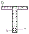 ④、在预制混凝土T梁的腹板底部按照设计要求布置预应力钢筋6;同时,在预制混凝土T梁的上翼缘内布置精轧螺栓4,或者布置预埋模具或波纹管用以形成预应力锚索穿装孔15;