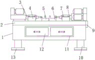 进一步地,支撑腿10的底端固定有底脚13,底脚13的下表壁粘接有防滑垫,粘接有防滑垫的底脚13紧贴地面,可增加该设备的稳定性。
