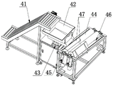 (4) The briquettes move to the lifting conveyor belt 41 of the briquette sorting device 4 along with the first conveyor belt 31, are lifted by the lifting conveyor belt 41 and are sent into the hopper 42, then fall into the middle of the two tapered rollers 44 through the hopper 42 and the straight vibrating feeder 43, and fall into each collecting tank 46 from the middle of the two tapered rollers 44 according to size classification.