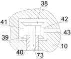 Beneficially or exemplarily, a rotating sleeve 40 is fixedly arranged on the rear end surface of the cylinder 71, the rotating sleeve 40 is connected with the main body 10 in a rotating fit manner, a rear cavity 41 is formed on the rear side of the combustion cavity 24, a first bevel gear 39 positioned in the rear cavity 41 is fixedly arranged at the rear end of the rotating sleeve 40, a second bevel gear 38 positioned in the rear cavity 41 is fixedly arranged at the rear end of the transverse rotating shaft 73, a driven cavity 27 is formed at the right side of the rear cavity 41, a transmission shaft 43 is rotatably arranged between the driven cavity 27 and the rear cavity 41, a third bevel gear 42 is fixedly arranged at the left end of the transmission shaft 43, the third bevel gear 42 is engaged with the second bevel gear 38 and the first bevel gear 39, a fifth bevel gear 26 is fixedly arranged at the right end of the transmission shaft 43, and the transmission shaft 43 drives the transverse rotating shaft 73 and the rotating sleeve 40 to rotate through the rotation of the fifth bevel gear 26, thereby rotating the perforated plate 44 and the agitating bar 45.