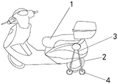 FIG. 1 shows: the electric vehicle 1 is provided with a folding and accommodating bracket 3 on the rear wheel 2, and the bracket 3 is provided with a small roller 4.
