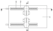 The device comprises a bed plate 1, a mounting groove 2, a hidden groove 3, a rotating bearing 4, a screw rod 5, a through groove 6, a connecting bearing 7, a rotating handle 8, a screw seat 9, a connecting screw hole 10, a connecting bolt 11, a supporting plate 12, a fixing bolt 13, an adjusting screw cylinder 14, a supporting bearing 15, an adjusting plate 16, a sliding groove 17, a sliding block 18, a through hole 19, a connecting hole 20, a fixing rod 21, a vertical plate 22 and a traction groove plate 23.