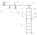 本发明属于建筑施工技术领域,尤其涉及一种大跨度网架檐口悬挂式自动移动施工平台。The invention belongs to the technical field of building construction, and in particular relates to a large-span grid-frame cornice hanging type automatic mobile construction platform.