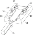 6.根据权利要求1所述的一种用于生产右前安装支架的自动化模具,其特征在于:所述的落料板(13)上端位于模孔(17)的前、后两侧各设有至少两个导向轮(11)。