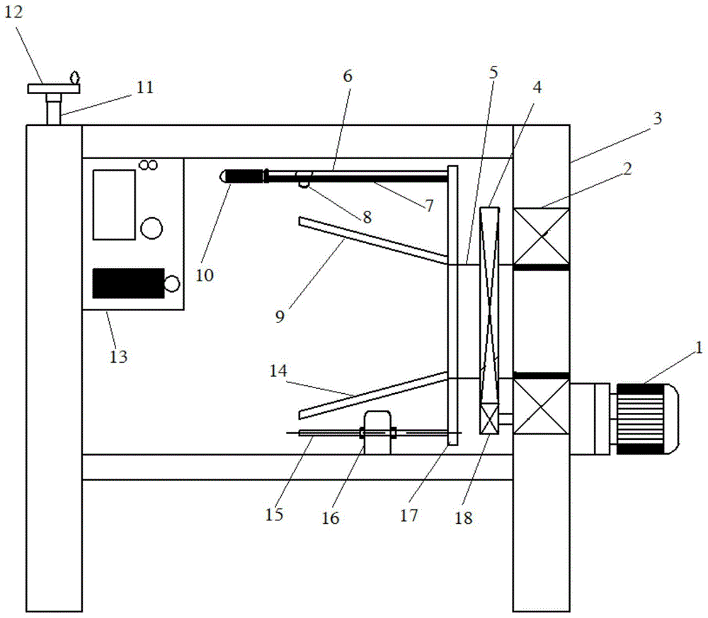 如图1所示,在本发明的一种全自动PVC管材覆膜装置中,第一电机1为变频电机,机架3上还安装有变频控制器13,变频控制器13与第一电机1电连接。As shown in FIG. 1 , in a fully automatic PVC pipe coating device of the present invention, the first motor 1 is a frequency conversion motor, and a