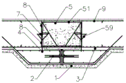 4.根据权利要求1所述的地下车库底板后浇带施工方法,其特征在于,在两侧杆(53)的外侧、止水板(7)下还固定有一支撑杆(59),所述支撑杆(59)的上端位于止水板下,能够将止水板伸出部分托起。